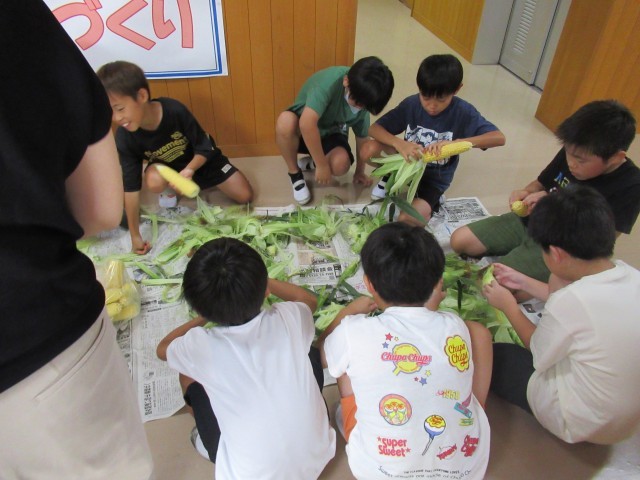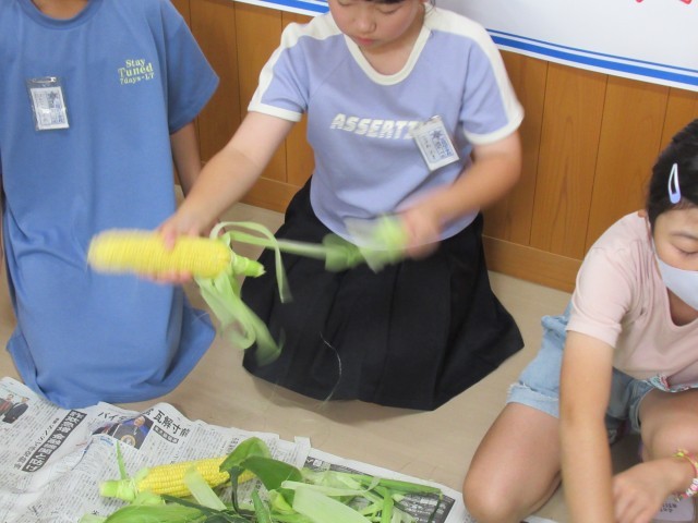 給食では、新鮮で甘いトウモロコシをいただきました。