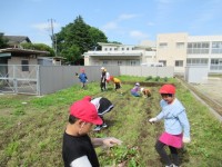 地域の方と共に「サツマイモ」の苗植えを行いました(3年生)