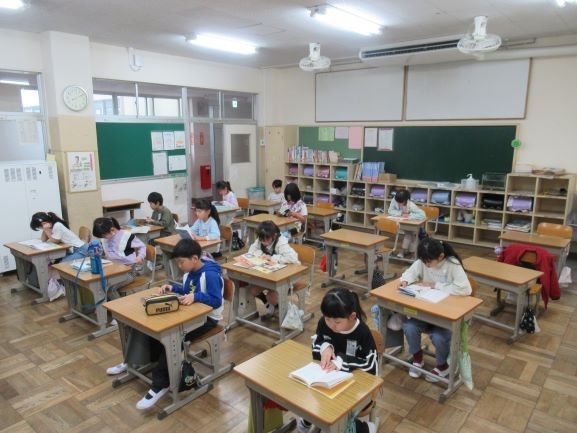 朝の読書の時間、自分で選んだ本を落ち着いて読むことができました。 学級活動、前期...