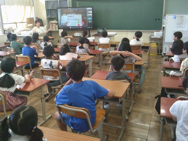 本日(7/18)朝、夏休みに向けての「オンライン全校集会」をおこないました。各担当から夏休みの健康、安全な生活について全校児童にむけたお話です。学習を含めた細かいお話は各学級で担任からおこないます。