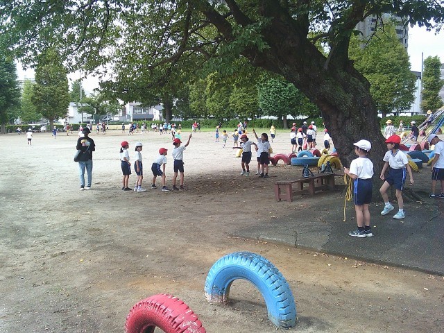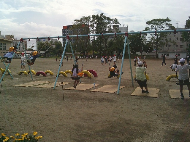 本日9/4、降り出した雨が中休み前にあがり、暑さ指数も久々に下がって、外遊びができました。遊具遊びのほか、ドッヂボールや一輪車乗りなど校庭に元気な声が広がっていました。
