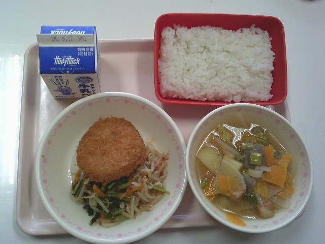 ごはん 牛乳 メンチカツ 土佐あえ 実だくさん汁