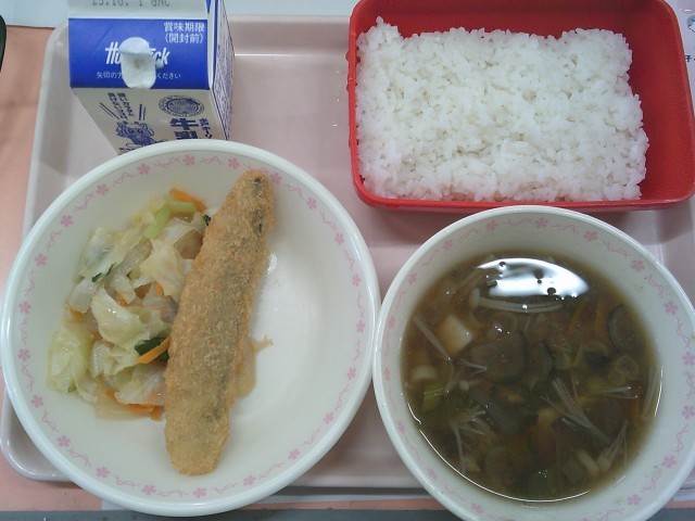 ごはん 牛乳 さんまフライ こんにゃくサラダ みぞれ汁