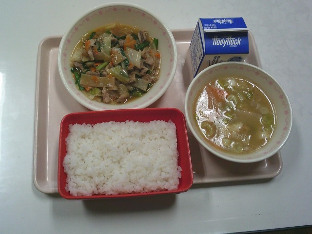 ごはん 牛乳 豚肉のスタミナ炒め 厚揚げのみそ汁