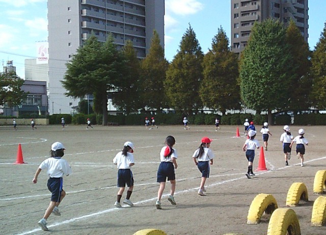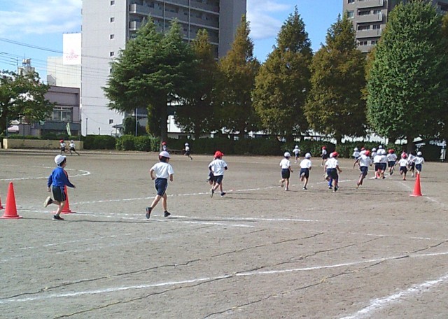 本日(10/28)2校時、2年生の学年体育の様子です。晴天のもと、校庭で持久走に取り組んでいました。男女別のスタートで、互いに大きな声援をおくっていました。