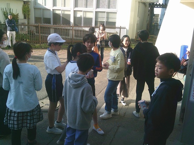 本日(11/7)午後、授業参観をおこないました。授業公開に合わせて、イラストクラブの児童が図工室前廊下に作品を展示しています。福祉委員会の児童が授業参観後の保護者の方々に「赤い羽根共同募金」の協力を呼びかけました。昼休みには児童代表委員会での話合いの様子を関係保護者や地域の方にご覧いただきました。