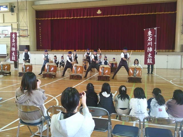 本日(11/15)、フェスティバルは延期しましたが、この日に向けて練習してきた合奏ダンスクラブと東石川陣太鼓は体育館で発表して、その様子をオンラインで各学級に映像で送信しました。それぞれの発表には大きな拍手が送られていました。
