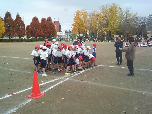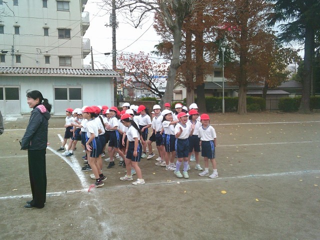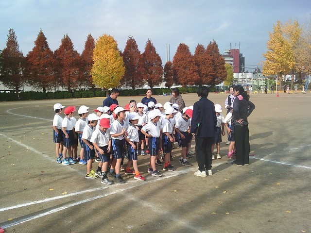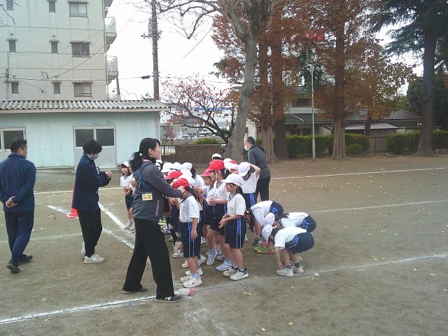 本日(12/2)2校時、校庭で1・2年生がチャレンジ・ランニング2回目をおこないました。薄曇りの中、応援の声を受けて、懸命に800mを走りました。