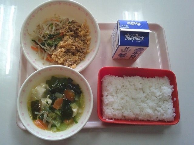 ごはん 牛乳 切干大根入りビビンバ わかめスープ