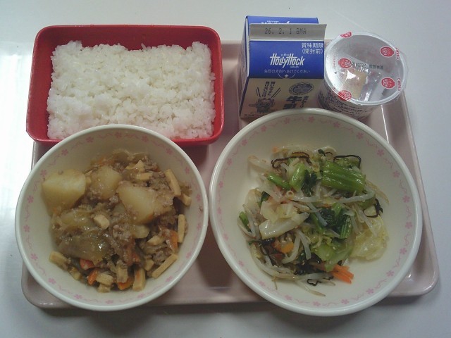 ごはん 牛乳 納豆 じゃがいものそぼろ煮 ごま昆布あえ