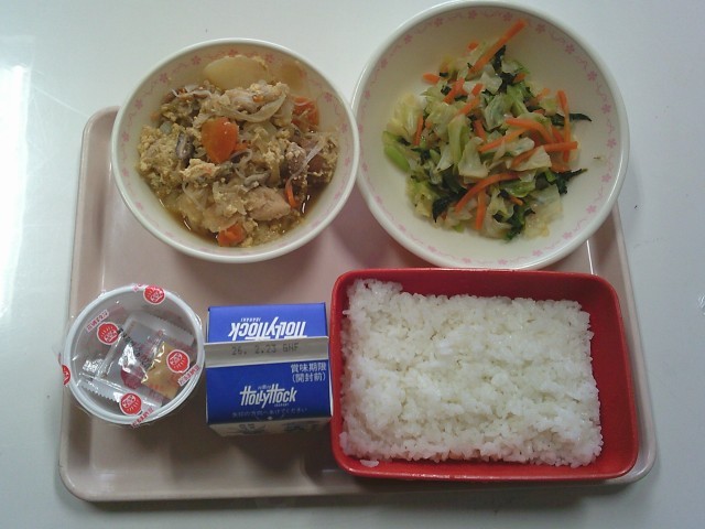 ごはん 牛乳 油麩の卵とじ煮 磯香あえ 納豆
