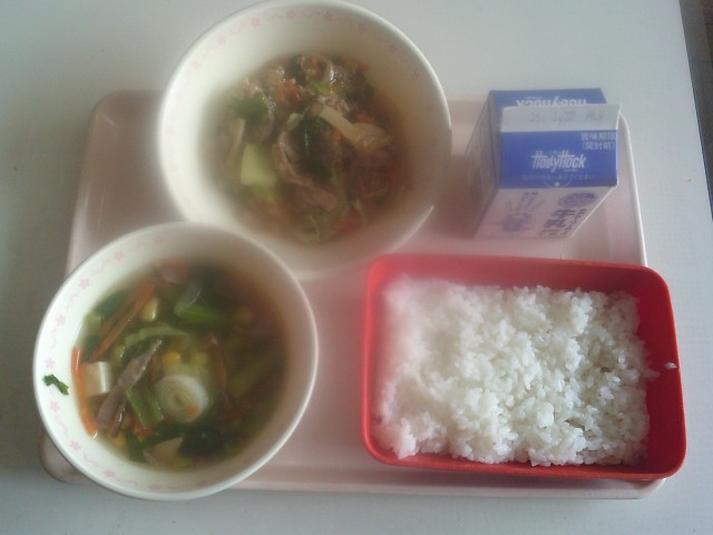 ごはん 牛乳 豚肉のスタミナ炒め 中華スープ