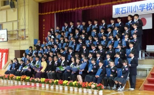 本日(3/19)、第85回卒業証書授与式を体育館でおこないました。卒業生一人一人に証書を授与した後、みんなで撮った集合写真です。進学先での活躍を応援しています。