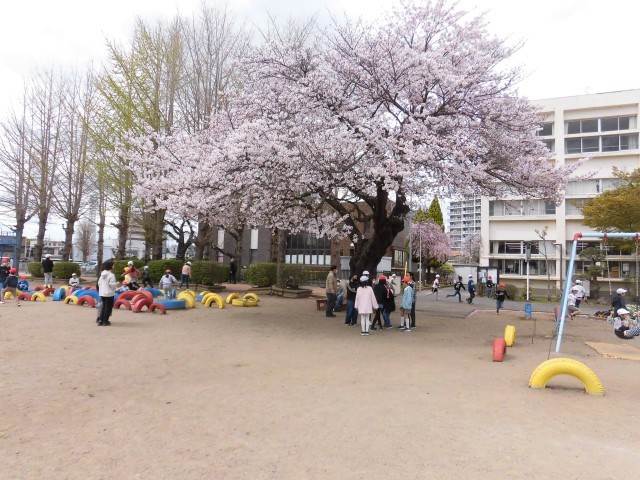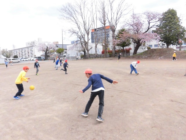 ドッジボールや鬼ごっこを楽しむ子、友達と声を掛け合いながら走り回る子など、どの子も笑顔にあふれていました。満開の桜の下で、新しい友達との交流を深める様子も見られ、春らしいあたたかなひとときとなりました。