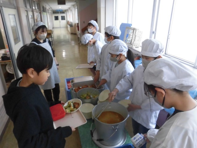 新年度がスタートし、各クラスでは給食当番の活動も始まりました。白衣に身を包んだ子供たちは、手順を確認しながら協力して配膳を行い、友達のために一生懸命取り組んでいます。これからも給食の時間を通して、協力することの大切さや思いやりの心を育んでいきます。1年生の給食開始は、15日(水)からになります。
