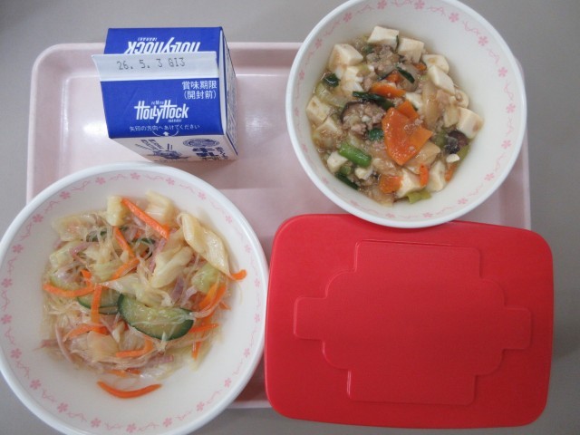 【献立】ごはん 牛乳 マーボー豆腐 バンサンスー