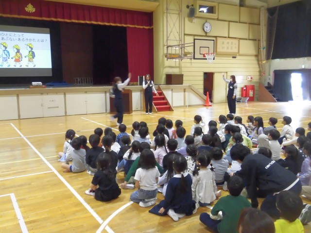 1・2年生を対象に、交通安全教室を実施しました。はじめに体育館で、道路の歩き方や横断歩道の渡り方、交通ルールについて映像を見ながら学びました。子供たちは、話をよく聞きながら、交通安全について真剣に考えていました。