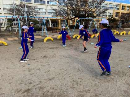 その後は、クラス全員で8の字とび。「1、2、3、4、5・・・」