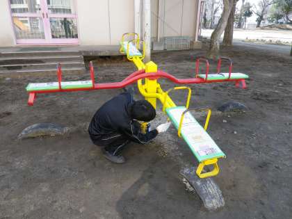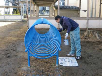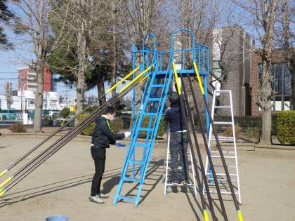 さて、本日、9:00からおやじの会の皆さんに、遊具を塗装していただきました。子どもたちが気持ちよく遊べるように、丁寧に色を塗ってくださいました。子どもたちの元気に遊ぶ姿が目に浮かびます。約2時間の作業でした。おやじの会の皆様、本当にありがとうございました。