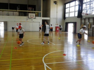 昨日の5年生に引き続き、今日は6年生がクリニックを行いました。昨日とは違う選手がきてくださり、ドリブルやシュートの練習、その後、簡単なゲームをしました。選手と同じようにボールを扱うことはできませんが、挑戦する姿勢は感じられました。地域にいる素晴らしい人材に教わることができた貴重な時間でした。
