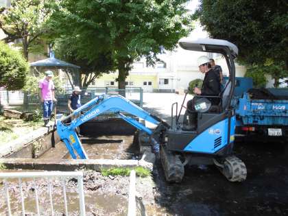 22日(土)8:30からおやじの会のお父さん方7名による、泉の清掃作業が行われました。重機やトラック、バケツすくいなどの手作業を組み合わせ、泥だらけになりながらも熱心に作業していただきました。暑い中、本当にありがとうございました。
