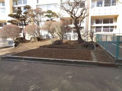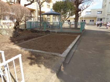 かつて本校おやじの会に設置していただた泉・池の埋め立てを、先週土曜日(1/25)におこなっていただきました。水の循環装置が無くなってからは、ボウフラが湧き、蚊が発生する場所でした。改修いただき、感謝です。