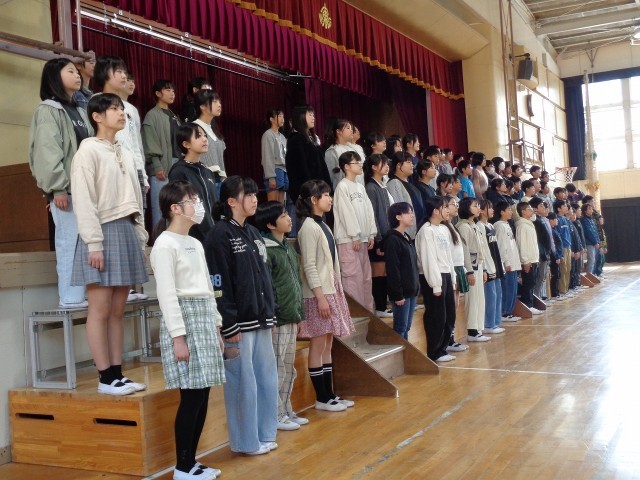 本日3・4校時に、5・6年生で、卒業式予行をおこないました。6年生はもちろん、5年生も立派な態度で練習に臨んでいました。19日の本番では、5年生の協力を得て、教職員で6年生を東石川小から巣立たせたいと思います。