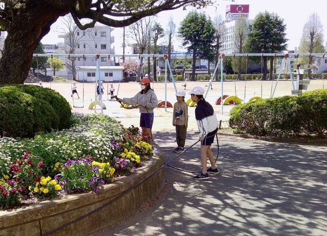 本日4/16の中休みの様子です。今年度の委員会活動は来週からですが、生き物や草花は、昨年度の委員がお世話を継続してくれています。写真左は飼育委員会、右は美化委員会です。低学年児童が興味津々に活動を見ている様子も微笑ましいです。