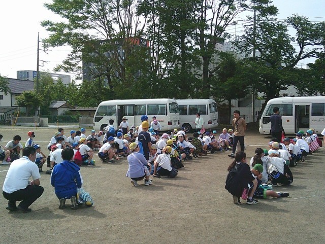 本日(5/15)から、本年度体育の水泳学習が始まりました。今年度も市の委託先であるスパーク青葉の温水プールで、インストラクターの指導をいただきながら、学習を進めていきます。写真は、送迎バスに乗り込む6年生の様子です。