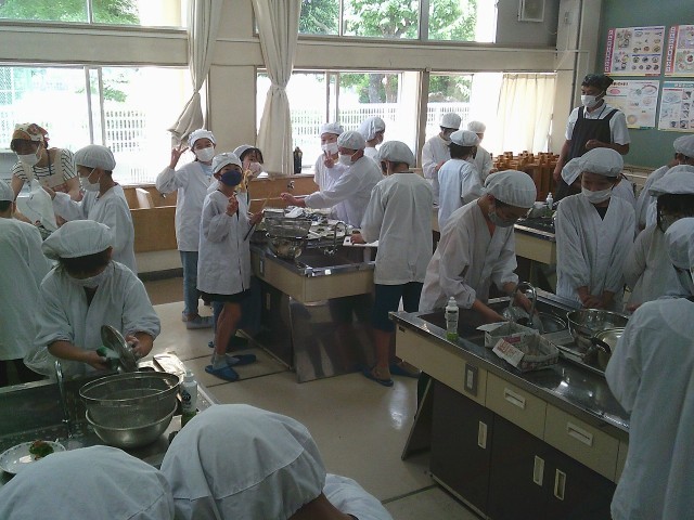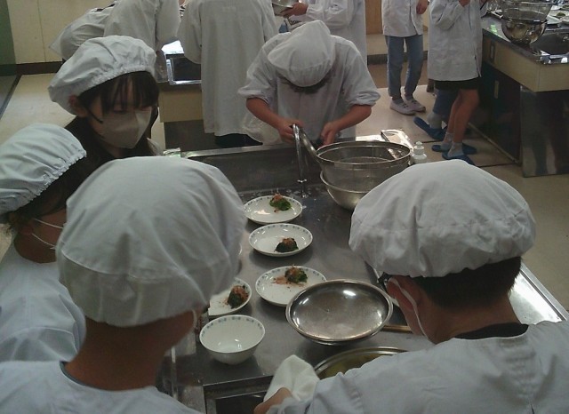 本日(6/6)1・2校時、5年2組が家庭科の調理実習をおこないました。写真は、ほうれん草とじゃがいもの「ゆでる」調理をしている様子です。出来映えはどうだったでしょうか。