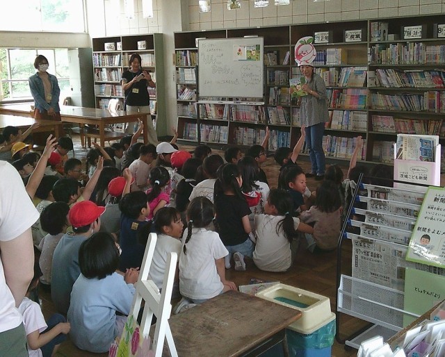 本日(6/6)昼休み、教養厚生委員保護者の方々による、読み聞かせが図書室でおこなわれました。今日まで図書委員会児童が校内放送で呼びかけてきました。今年度初回は図書室フロアいっぱいに児童が集まっていました。