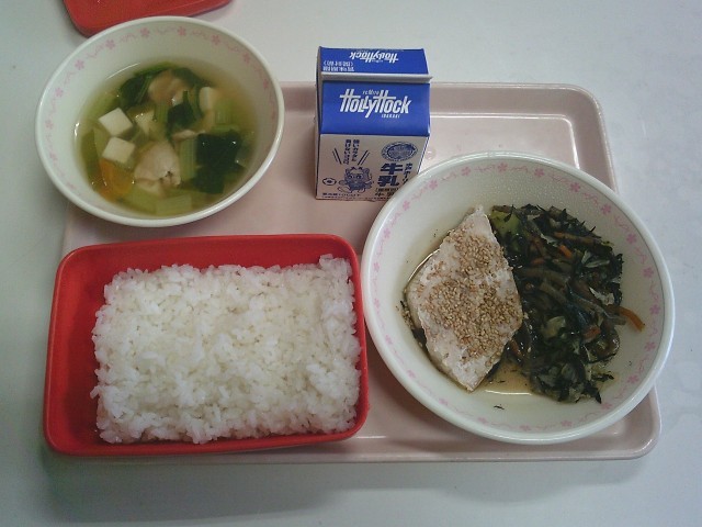 ごはん 牛乳 さばのごま焼き ひじきの炒め煮 すまし汁