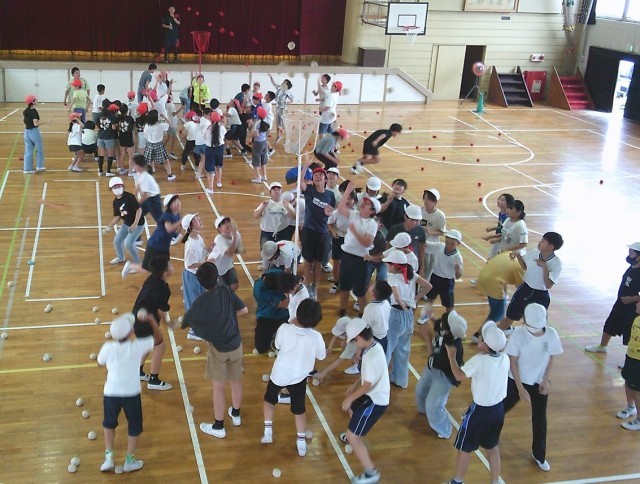 本日(6/30)5校時、6年生が学年レクを体育館でおこないました。実行委員会を組織し、運動会の思い出種目「紅白対抗チェッコリ玉入れ」などを企画し、実施したものです。歓声があがっていました。