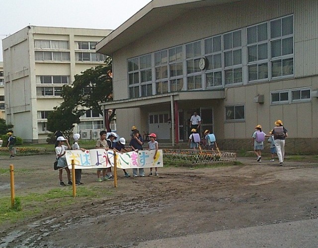 本日(7/2)、縦割り班活動の一つ、朝のあいさつ運動が始まりました。今朝は、1・2班が担当で、南門と西門に分かれて挨拶の声かけをしていました。これから、定期的に各班がおこなていきます。