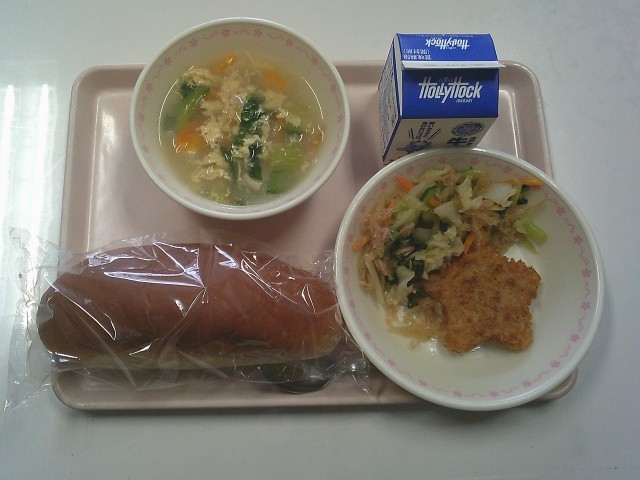 ミルクパン 牛乳 星型コロッケ 寒天入りヘルシーサラダ 星のたまごスープ