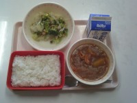 【献立】ごはん 牛乳 根菜カレー 寒天入りヘルシーサラダ
