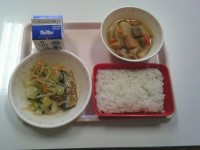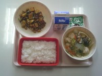 【献立】ごはん 牛乳 豚肉のスタミナ炒め のっぺい汁