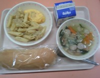 【献立】コッペパン 牛乳 トマトオムレツ ペンネソテー 玄米入り野菜スープ ...