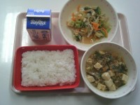 【献立】ごはん 牛乳 四川風麻婆豆腐 白菜の中華あえ