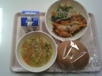 【献立】ジェノベーゼスパゲッティ 牛乳 小松菜とチーズのサラダ ドーナツ ...