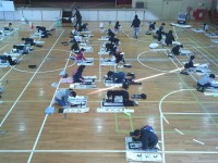 本日(1/15)1・2校時、3年生が体育館で書き初め会をおこないました。習字のゲ...