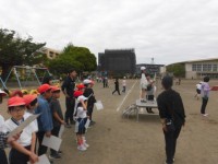 1年生が体力テストを行い、6年生がそのお手伝いをしました。 立ち幅跳びでは、6年...