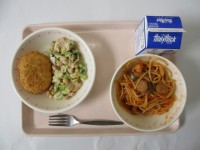 【献立】スパゲッティナポリタン 牛乳 コロッケ ツナ豆マヨサラダ