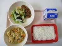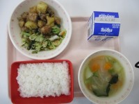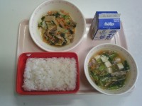 【献立】ごはん 牛乳 豚肉のスタミナ炒め 中華スープ