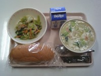 【献立】コッペパン チョコクリーム 牛乳 チンゲン菜のクリーム煮 ガーリックドレ...