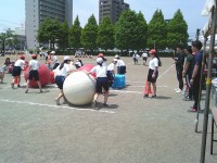 本日(5/16)3校時、運動会の最終団体種目、全校児童による大玉転がしの練習を...