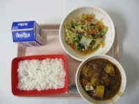 【献立】ご飯 牛乳 ビーフカレー 寒天入りヘルシーサラダ