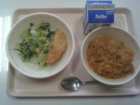 【献立】ジャンバラヤ 牛乳 白身魚のレモンフライ 枝豆とコーンのサラダ ...