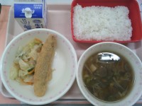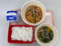 【献立】ごはん 牛乳 鶏肉の唐揚げ ひじきの炒め煮 なめこ汁