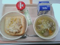 【献立】コーンマヨネーズトースト 牛乳 肉だんごと野菜のスープ煮 ヨーグルト ...